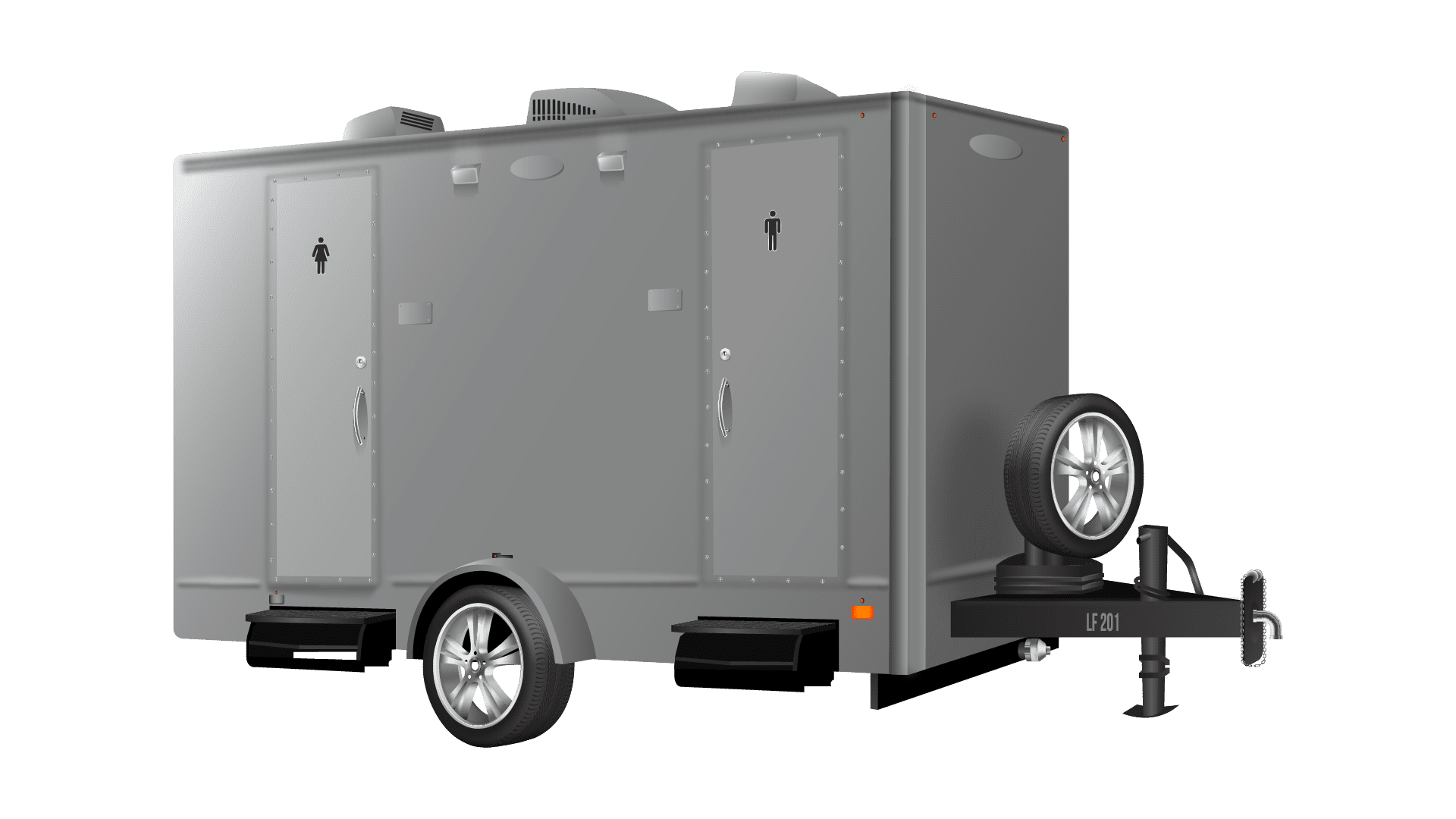 The features you can expect of this two-stall restroom trailer include: